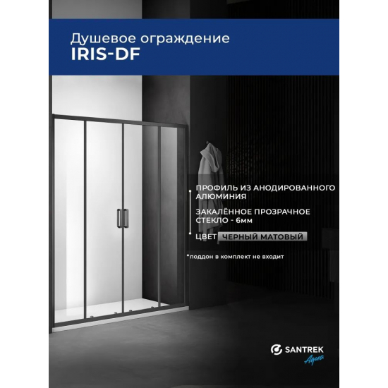 Душевая дверь в нишу SANTREK AQUA Iris-DF-1500-C-Matt Black 150x185 профиль чёрный