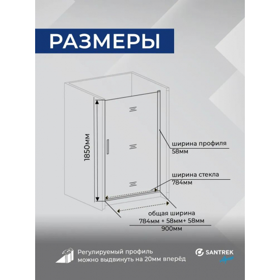 Душевая дверь в нишу SANTREK AQUA Luna-DP-900-C-Chrome 90x185 стекло прозрачное, профиль хром